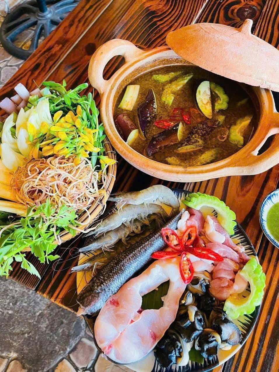 The restaurant specializes in traditional home-style dishes but prepared with refinement, making even gourmets nod in approval. You absolutely must try the shrimp bánh xèo (with tiny river shrimp), lẩu mắm (fermented fish hotpot, if you can handle the unique aroma), or local salads like gỏi bông điên điển (sesbania flower salad). These dishes are not only delicious but also evoke childhood memories for those far from home.